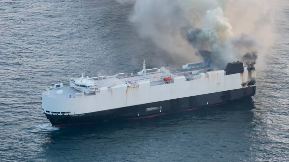 Buque que viajaba de China a Michoacán se hunde con miles de vehículos eléctricos a bordo